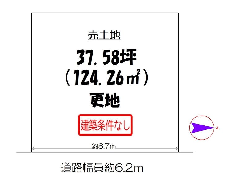 土地面積 公124.26㎡(37.58坪) 接道 東側(公道)幅 約6.2m 間口 約8.70m